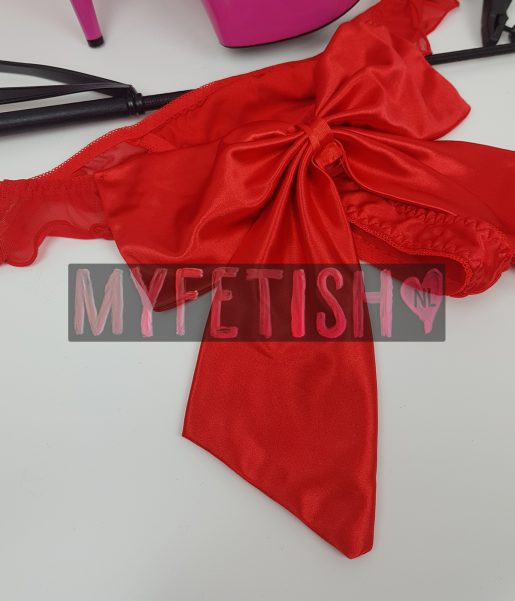Een heerlijke fijne satijnen string met een grote strik op de achterkant.